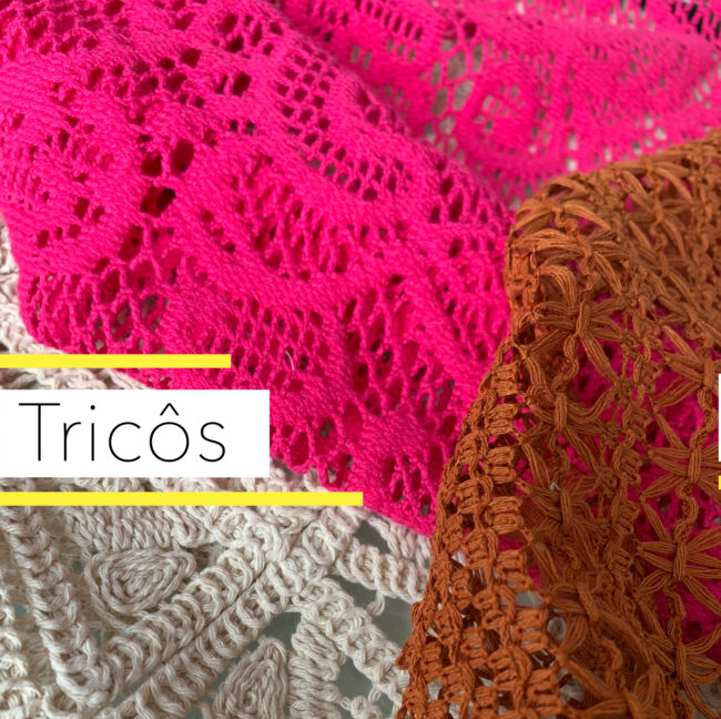 Diferentes padronagens de tricôs, desde os mais pesados aos mais leves e abertos.